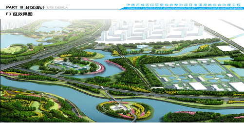 南溪湿地公园项目,占地310公顷,地处长春市南部新城核心区域,属伊通河上游。依据该区域内的景观现状及城市文化背景,设计方将整个地块划分为西侧滨河区域、东部湿地区域两大地块,并分别定位为: