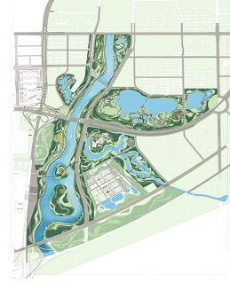 目前这一设计的总体目标,是利用河道滩地及现有坑塘、洼地,建设人工湿地环境,将文化、生态和游憩有机结合,使其成为防洪减灾、生态保育、文化旅游、休闲娱乐、教育展示于一体的综合性城市湿地。
