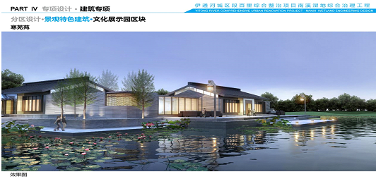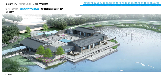 南溪湿地公园内的景观建筑,总体定位于集山川风物与地域民俗的长春文化服务建筑,和融人文雅韵与自然生态的市民养生休闲建筑。