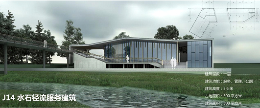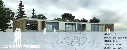 游客服务中心,拟选址在南溪湿地东北角,彩织街西侧、靠近南四环路的区域。建筑面积约16000平方米,主要功能为游客服务咨询、展览展示、办公及轻餐饮等。