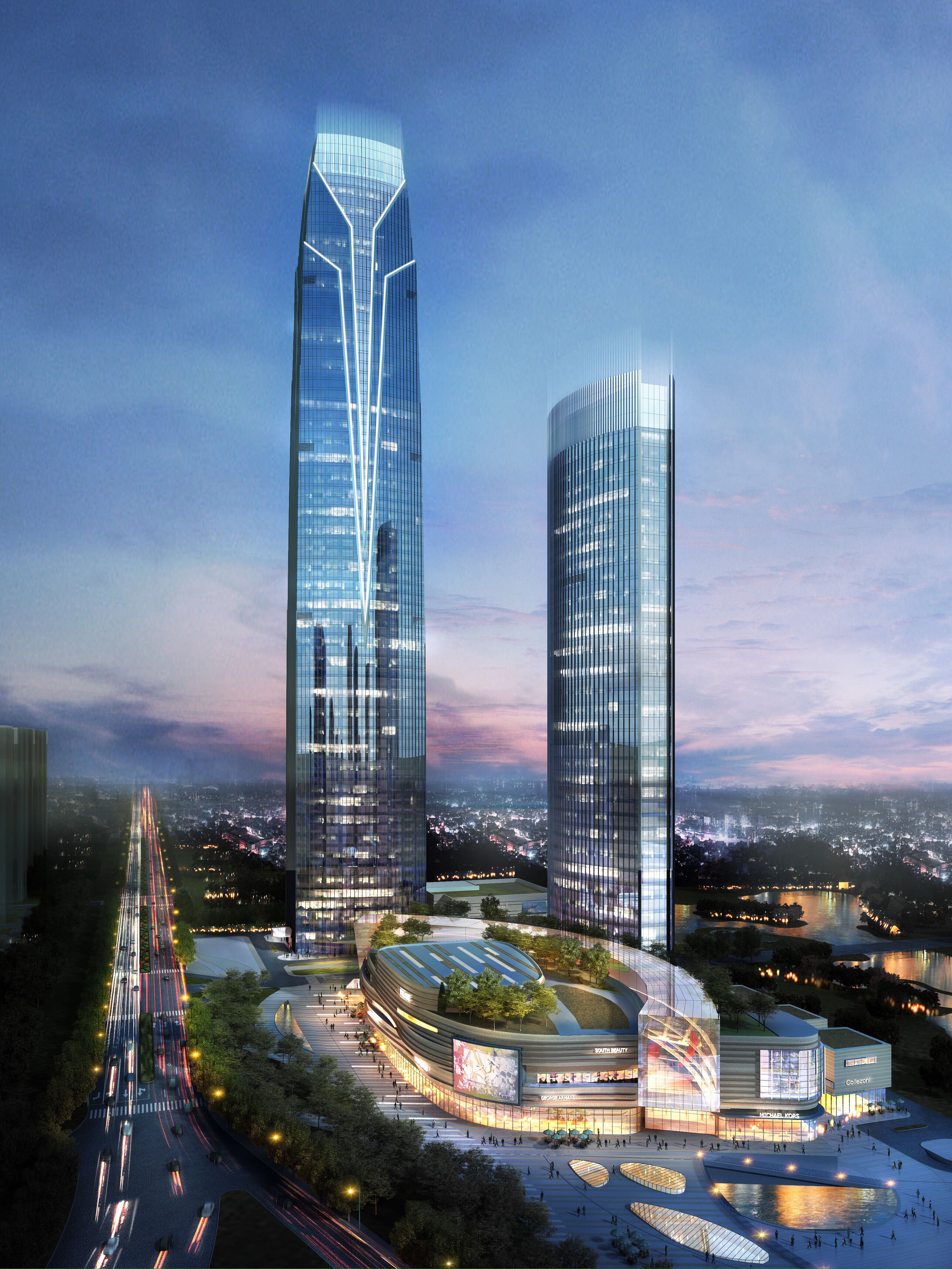 项目地标性建筑的整体规划、建筑设计是由美国著名的公司Genlser设计的,它是上海陆家嘴第一高楼“上海中心”设计的缔造者。