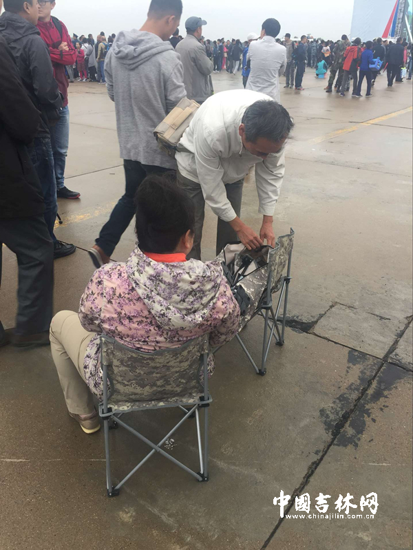 有观展老人自带马扎
