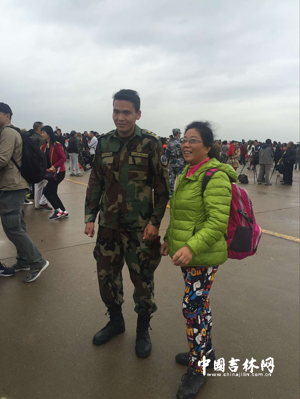 中国吉林网讯 记者 栾喜良 现场观众与空军学院学员合影。