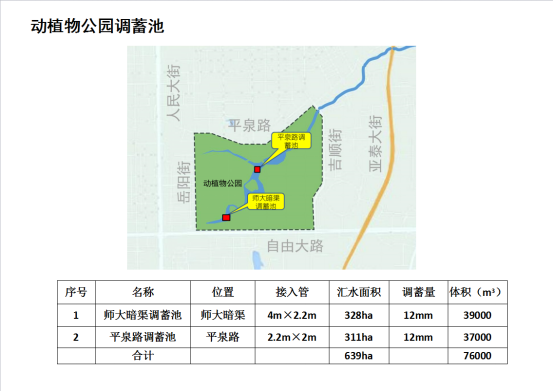 在长春动植物公园内拟建2座调蓄池,分别为师大暗渠调蓄池、平泉路调蓄池。