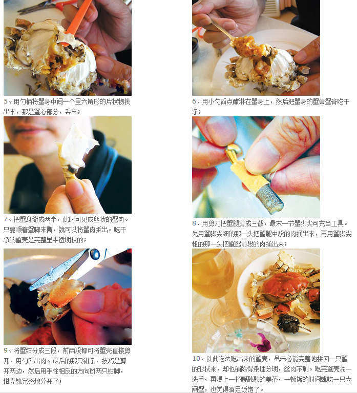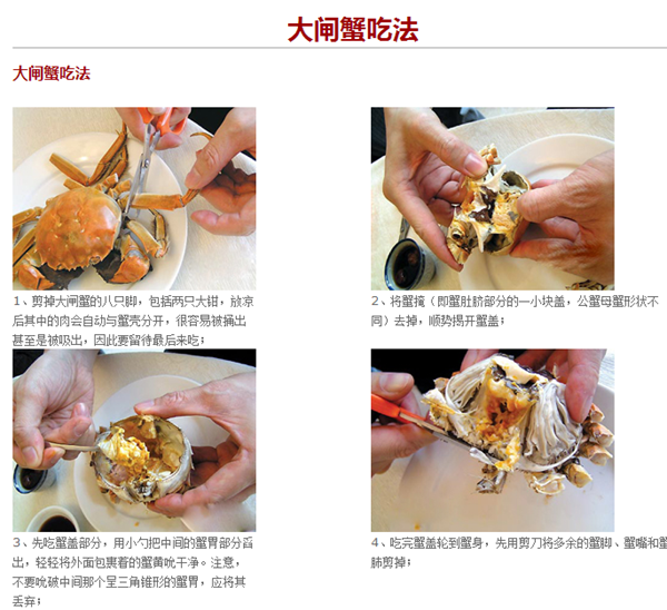 国人食蟹的历史,最早又可追溯到西周时代。那么价格不菲的螃蟹,究竟该怎么吃,中国吉林网记者为您图解吃蟹(以大闸蟹为例)