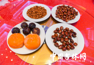 这还不算什么!栗子、榛子,还有松子,也都摆上了桌,这些都是咱大吉林绿色生态的馈赠,也请来自八方的朋友尝一尝。