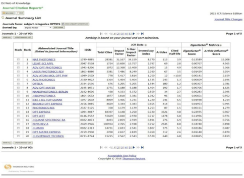 2016年Light影响因子13.6蝉联国际光学期刊榜眼,入选“2016中国最具国际影响力学术期刊”。