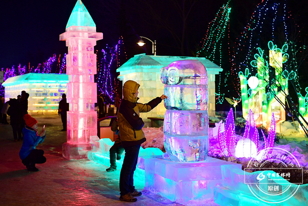 爱护雪雕、冰灯 争做文明游园的好市民