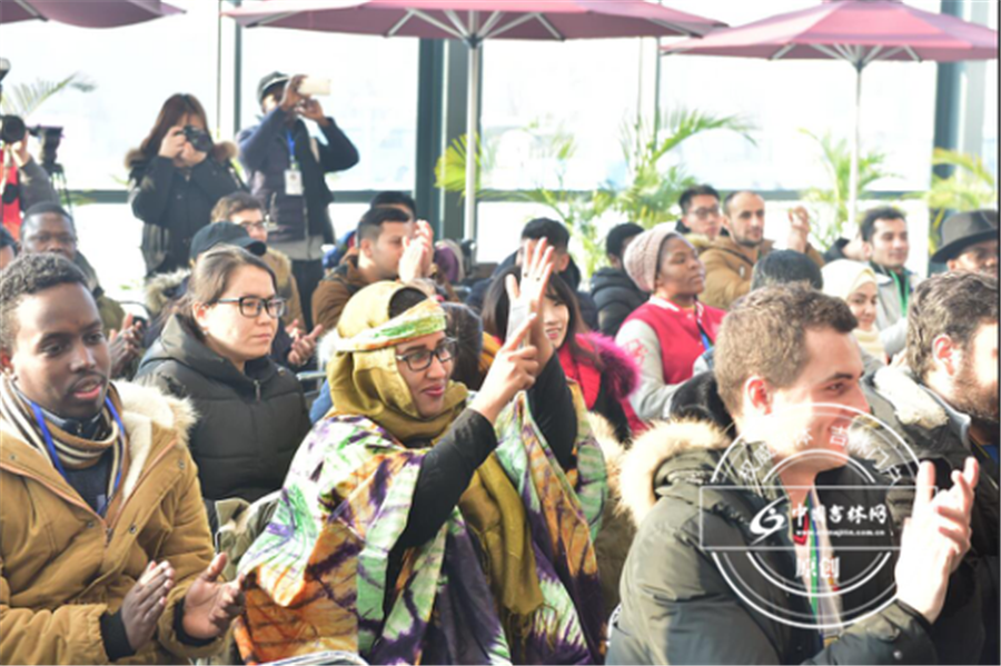 启动仪式上,国际友人还和长春市一实验银河小学的学生代表们围绕冰雪文化和春节习俗进行了多种多样的文艺表演,活动现场掌声阵阵叫好连连,气氛十分热烈。来自吉布提的莫言和中国吉林网、吉刻APP记者说,“我是第一次来到长春,我觉得长春非常好,很喜欢,我觉得跟孩子们一起玩很有意思,我很喜欢他们这个红色的衣服。”