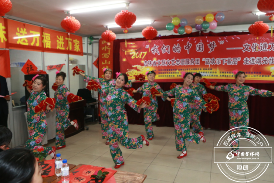 1月18日下午,由省委宣传部、省文联联合举办的2017年"我们的中国梦"—文化进万家、省文联文艺志愿服务团"送欢乐下基层"走进长春市朝阳区桂林街道湖光社区,为广大居民送去了文艺演出、春联等文化年货。