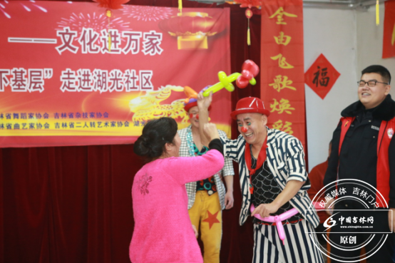 随着热烈奔放的舞蹈《开门红》拉开了送演出的序幕,著名二人转表演艺术家董玮、韩子平、闫淑平、佟长江为大家带来一段段耳熟能详的二人转唱段,引来现场一阵阵热烈的掌声。王明明的歌曲《回家的感觉真好》,令观众倍感亲切;王云的魔术,令观众目不暇接;左辉、冯福伟的杂技手技《小丑》点燃了现场气氛;张志田、张哲的现代京剧引起现场观众的共鸣;赵婉彤的现代舞蹈《点绛唇》经典专业,一个多小时的演出,让社区观众看得过瘾,乐得合不拢嘴。“作为艺术家就应该把自己所有的专业素养都呈现给人民,在这样一个热闹欢快美丽的节点,能走进社区这个机会非常难得,我也非常珍惜这样的机会。只要在我们还能唱动的情况下,我们就要为观众唱上几场,用我们的行动给我们的新年增添几分快乐。”著名二人转表演艺术家韩子平说。