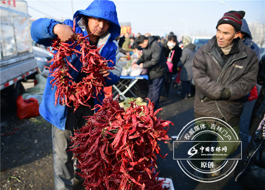 合心大集:买一串红红的辣椒,寓意着2017年红红火火。