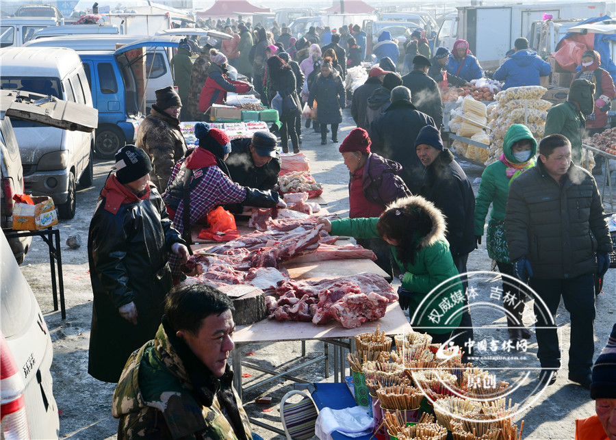 雁鸣湖大集 :肉类市场受百姓青睐。