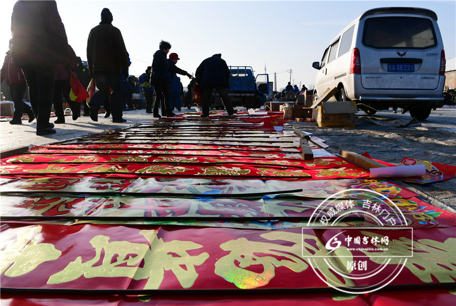 新城大集,集市上的各种春联供市民选购。