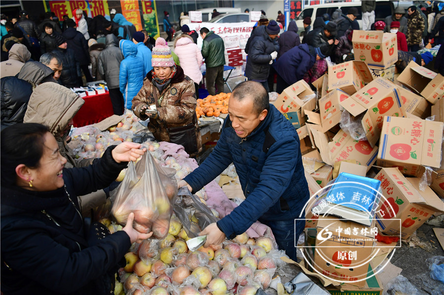 雁鸣湖大集:买些苹果,寓意过年平平安安。