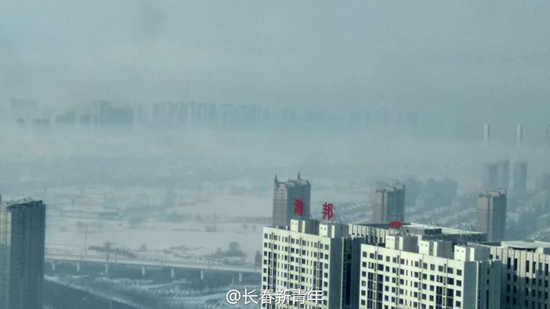 2月8日10时22分,微博网友@长春新青年发布两张网友投稿照片,声称在长春生态广场附近拍摄到了海市蜃楼奇观,并配有1小时前和1小时后的对比图片。第1张图片平淡无奇,但根据第2张图片,可清晰看见在某楼盘西侧,出现一排排高楼耸立云间,像极海市蜃楼。