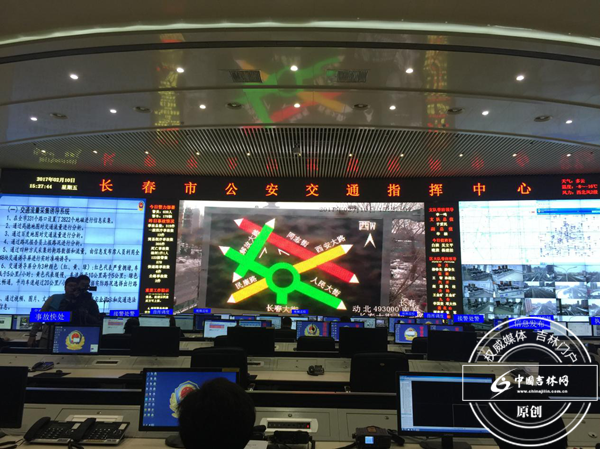 网络大V们走进长春市公安交通指挥中心,首先映入眼帘便的是3块大屏幕。通过大屏幕,长春市的交通路况一目了然。