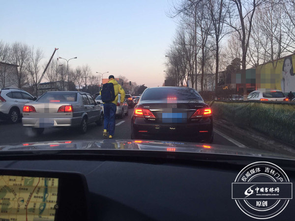 7时25分,东北师范大学东安实验学校附近的车流量越来越大,送孩子到学校的家长也越来越多,由于部分家长选择在校门口的永宁路边临时停车,所以永宁路上的双向车道显得格外拥堵。