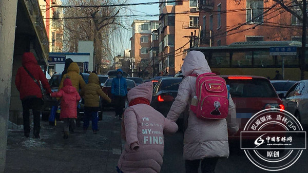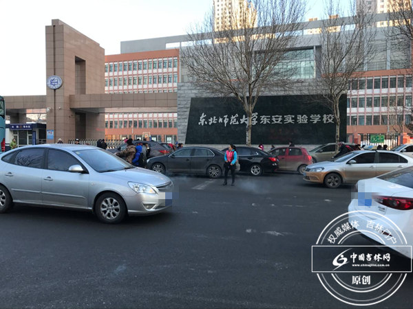 东北师范大学东安实验学校门口成私家车停车场,小学七点四十上课,家长陆续将孩子送到学校,永宁路路口从7点开始变得拥堵。