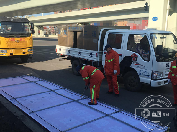 3月13日下午3时许,在东盛大街与东新路交会处有一支由二道区城管、长春环卫组成的清理小组正在对辖区内的违规灯箱广告牌进行集中清理。