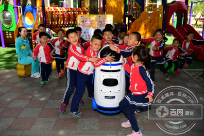 长春幼儿马拉松比赛首场比赛现场,吉网、吉刻APP记者看到了一个熟悉的身影,那就是本次比赛决赛的团体大奖——小胖机器人。这个能歌善舞能说会道的“小胖”一直在场边当“啦啦队”,为孩子们加油打气助威,赢得了很多老师和孩子们的关注。