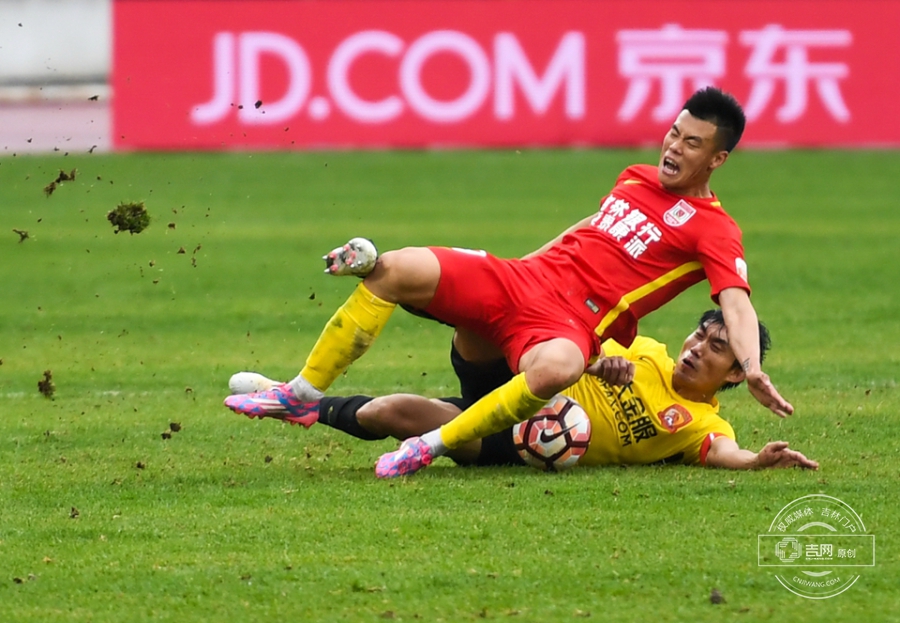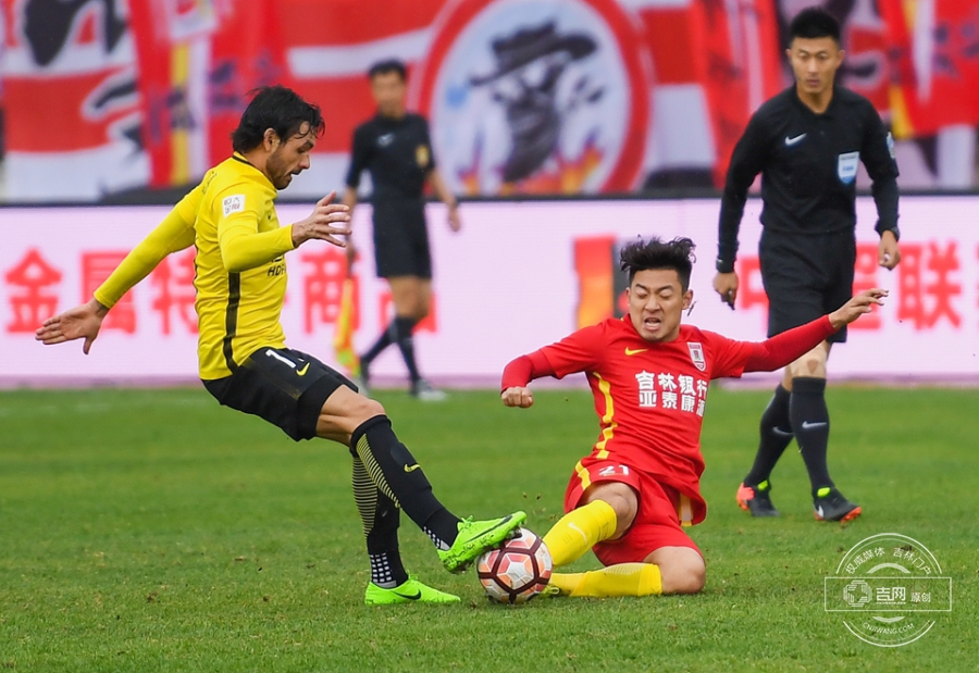第83分钟,谭龙右路带球,郑智侧后方放铲犯规,郑智领到黄牌。吉网、吉刻APP 摄影记者:罗浩