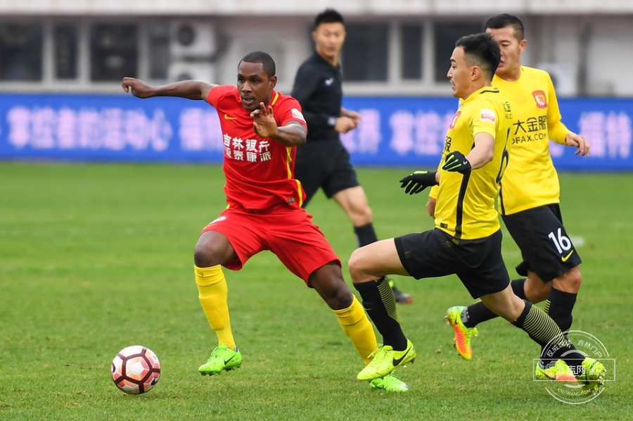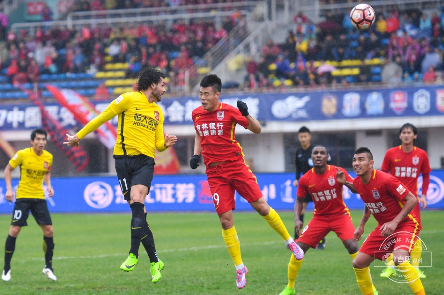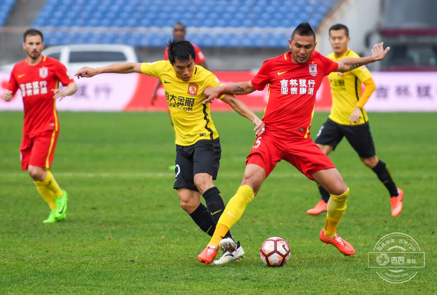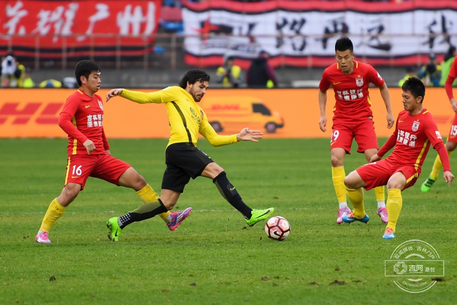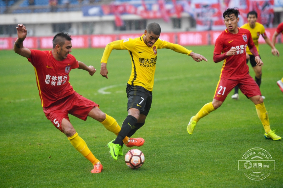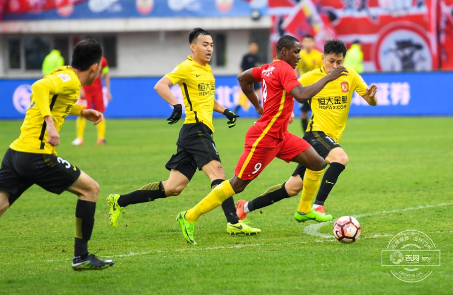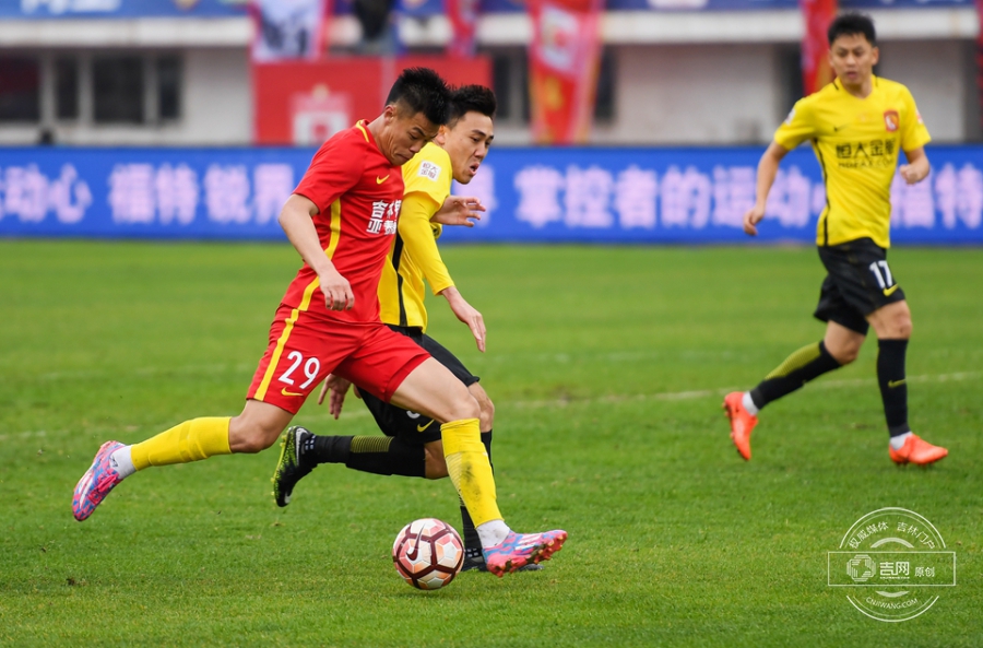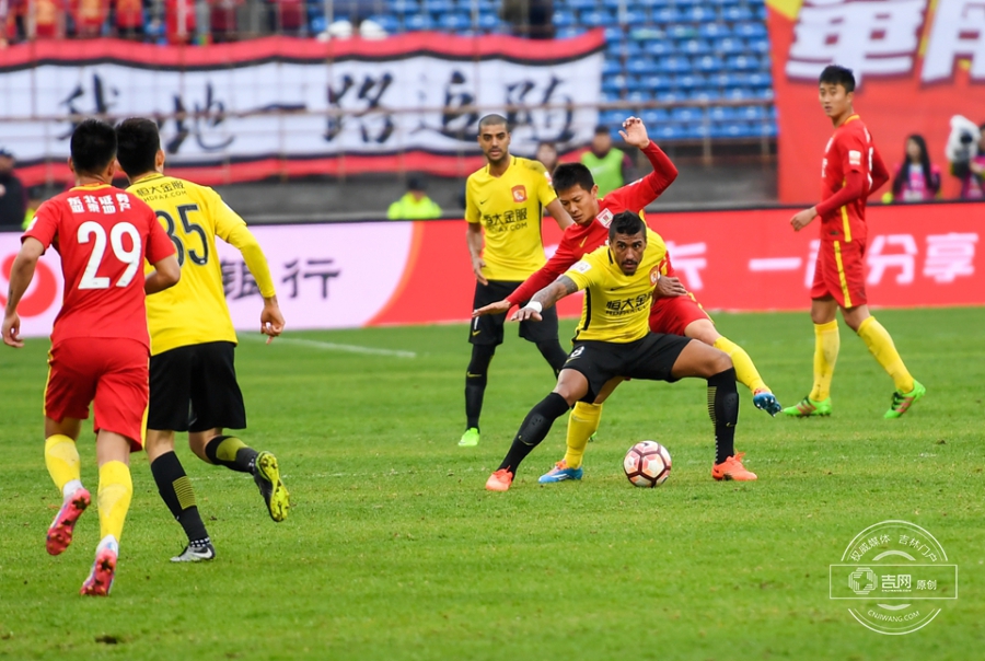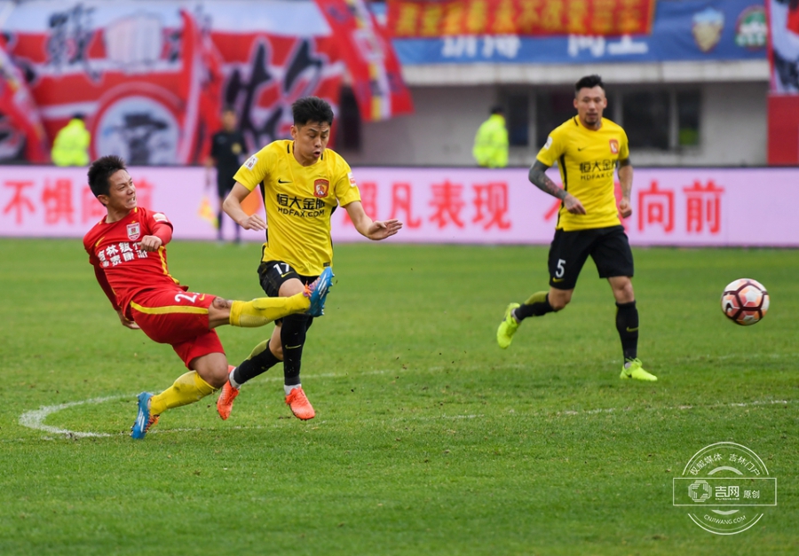 第61分钟,保利尼奥将球分到右侧空档,张琳芃迎球劲射,皮球直飞球门后角。广州恒大1:0长春亚泰。吉网、吉刻APP 摄影记者:罗浩