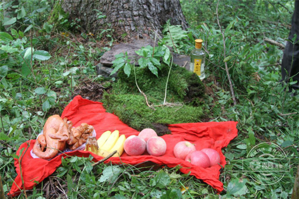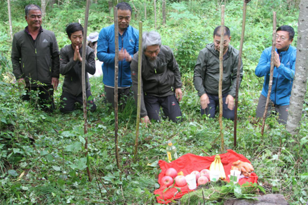 传习体验活动22日午后结束,团队在把头的带领下,带着烧鸡、猪脚、水果和酒等贡品,一起到“老爷府”还愿,感谢“山神老把头”的保佑采到棒槌,还了所许的愿。