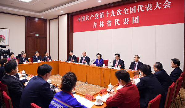 10月18日下午,出席党的十九大的吉林代表团在驻地开始讨论习近平同志代表十八届中央委员会所作的报告。代表们在发言中一致认为,十九大报告是一篇引领时代发展、符合党心民心、指引前进方向的纲领性文献,为我们走进新时代、开启新征程、续写新篇章,明确了坐标定位、指明了路径方向、提供了根本遵循。大家一致赞同、衷心拥护这个报告。