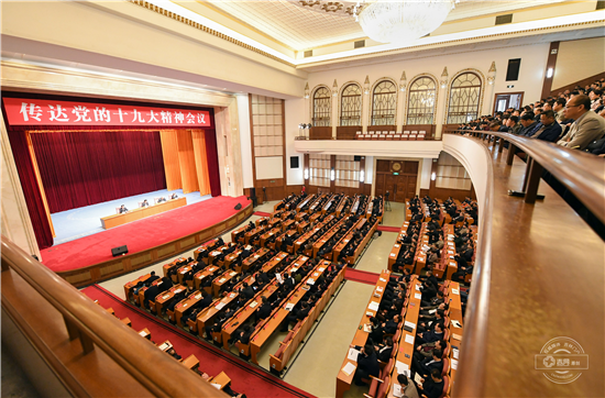 巴音朝鲁在讲话中指出,党的十九大是在全面建成小康社会决胜阶段、中国特色社会主义进入新时代的关键时期召开的一次十分重要的、具有里程碑意义的大会,是一次不忘初心、牢记使命、高举旗帜、团结奋进的大会。会议高举中国特色社会主义伟大旗帜,站在新时代的历史方位上,深刻回答了坚持和发展中国特色社会主义的一系列重大理论和实践问题,深刻阐明了未来一个时期党和国家事业发展的大政方针和行动纲领,提出了一系列新的重要思想、重要观点、重大论断、重大举措,开启了全面建设社会主义现代化国家的新征程,对决胜全面建成小康社会、夺取新时代中国特色社会主义伟大胜利、实现中华民族伟大复兴的中国梦,具有极其重大的战略意义和极为深远的历史意义。