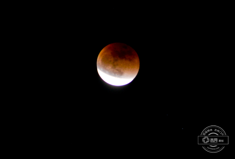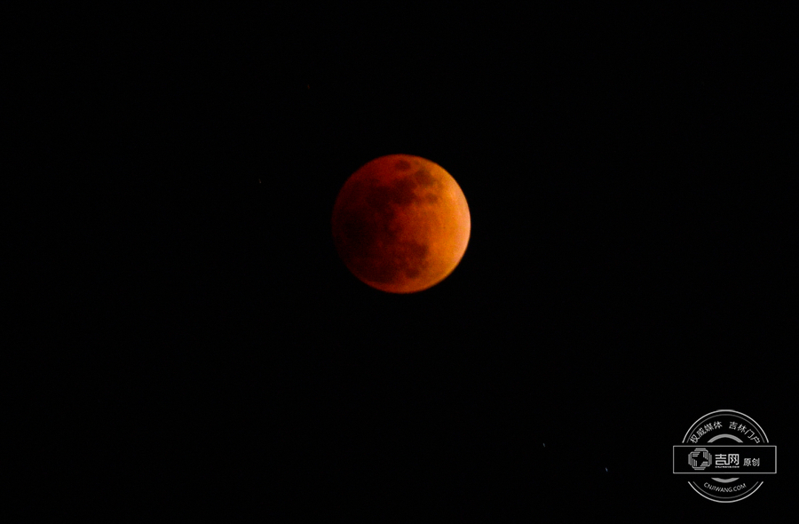 全食阶段的“红月亮”在20时51分至22时08分现身。吉网、吉刻APP摄影记者:罗浩