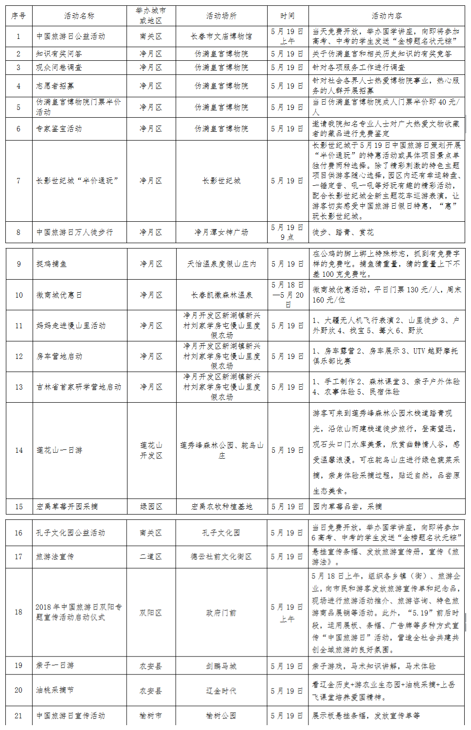 在旅游界,5月是与众不同的。除了万众瞩目的5·1小长假,每年的5月19日是中国旅游日,也是属于热爱旅游的人的盛大节日,尤其今年5月19日恰逢周末,作为省会长春,有哪些游玩福利呢?