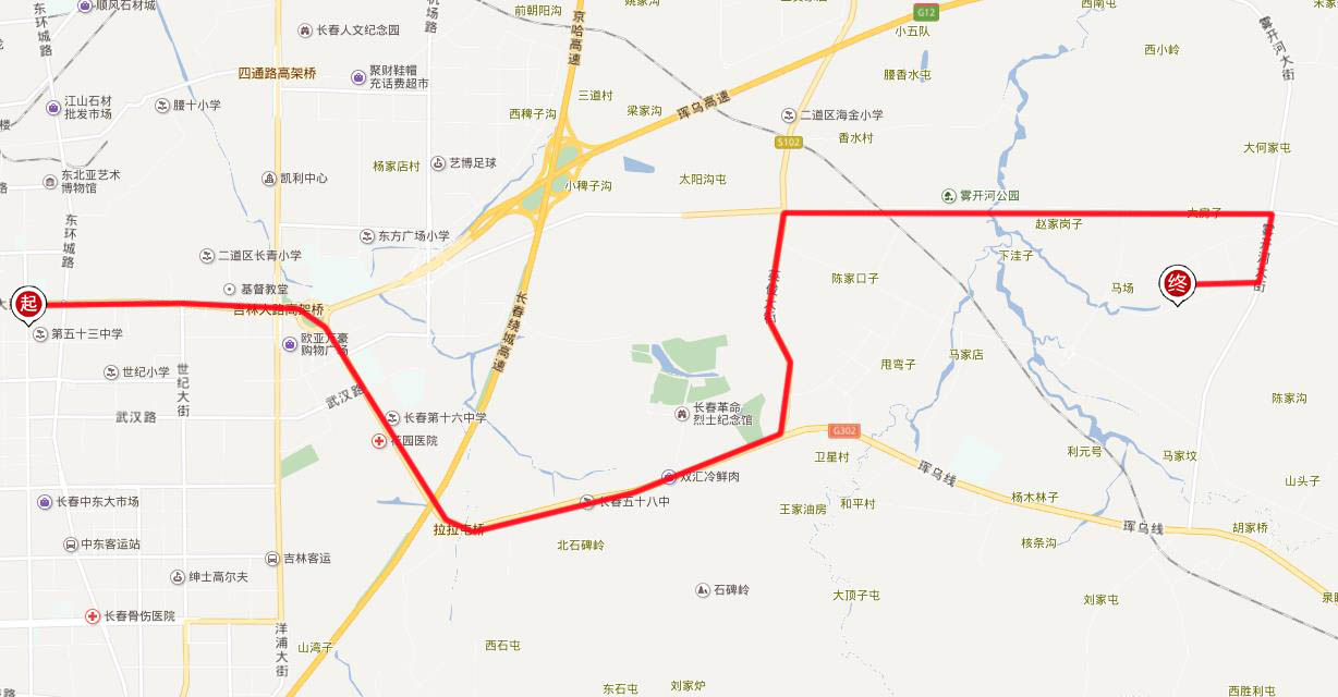 线路情况:该线路由公交集团经营,由欧亚卖场始发,途经红旗街、东风大街、欧亚卖场,终到众恒路,线路全长10公里。