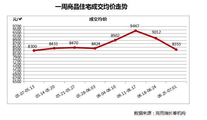 对于备受百姓关注的价格走势,姜峰认为6月26日,长春房地产市场专项整治工作全面开展,受政策的影响,部分项目存在价格疑议无法备案,从而在一定程度上影响了本周均价。上周回落到“8”字开头,接近一个月前的长春商品房成交均价,主要原因是本周盛世北湖春天团购房再次集中备案166套,均价1817元/平㎡,拉低了长春均价;原因之二是近期长春楼市进入调控敏感期,6月21日长春发布调控通知《关于加强房地产市场调控,稳定商品住房价格的通知》,通知中强调对对新办预售、已批预售但售价偏高或变动较大的商品住房严格审查,存在价格异议的暂停办理预售和网签。