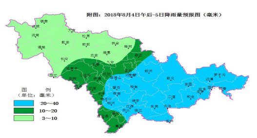 受副高后部切变影响,8月4日午后至5日我省东部将有一次较明显降雨天气过程,降雨主要集中在4日夜间至5日白天。其中,吉林东部和南部、通化北部、白山、延边和长白山保护区有中到大雨,部分地方有暴雨,过程降雨量为20~40毫米,最大降雨量可达90毫米左右,小时最大降雨量30毫米左右;吉林西北部、长春南部、四平东部、辽源、通化南部有小到中雨,过程降雨量为10~20毫米;其他地区有小雨,过程降雨量3~10毫米。初步预计8月7-8日我省东南部还有一次明显降雨天气过程。