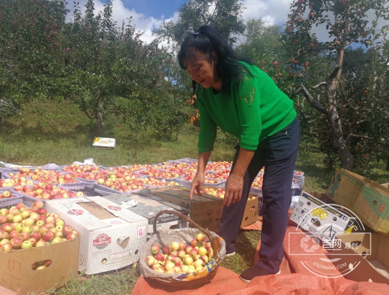 于丽清的于大姐采摘园在双顶村可谓是人尽皆知,如今她家的苹果已远销海外。“我有30亩地,大概3000果树,今年的产量特别好,大概得有十万斤左右。我的果园现在有海棠、七号、双秋海棠等十多个品种。销售的话,除去国内市场剩余的都要出口到菲律宾。越南、老挝、柬埔寨等国家,在当地的市场份额越来越大,可以说销售情况一年比一年好,目前我的年收入可以达到10万元左右。”于丽清说。