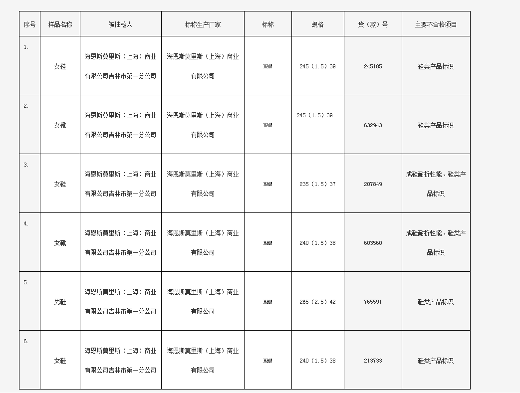 吉林省工商局委托吉林市工商局对辖区内所销售的服装鞋帽及纺织品进行了抽查检验。本次抽查检验采用GB/T2828.4-2008《计数抽样检验程序 第4部分:声称质量水平的评定程序》和GB/T16306-2008《声称质量水平复检与复验的评定程序》标准,依据GB18401-2010《国家纺织产品基本安全技术规范》、GB/T5296.4-2012《消费品使用说明纺织品和服装使用说明》、FZ/T81007-2012《单夹服装》、FZ/T81010-2009《风衣》、GB/T15107-2013《旅游鞋》、B/T22844-2009《配套床上用品》、GB/T22796-2009《被、被套》、GB/T22797-2009《床单》GB20400-2006皮革和毛皮有害物质限量、GB25036-2010布面童胶鞋、GB30585-2014儿童鞋安全技术规、QB/T4331-2012儿童旅游鞋 、QB/T2880-2016儿童皮鞋、QB/T4546-2013儿童皮凉鞋等备案有效的企业标准或产品明示指标等相关的国家标准、行业标准或企业标准,对服装鞋帽及纺织品的使用说明、甲醛含量、pH值、耐水色牢度、成鞋耐折性能、外底与外中底粘合强度等项目进行了检验。共抽检商品78组,其中不合格41组,不合格率为52.56%。(工商部门商品质量抽查检验具有一定的针对性,测试结果不代表市场流通商品的总体质量水平)。