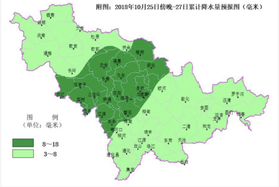 从省气象局获悉,受蒙古气旋影响,10月25日傍晚到27日,我省自西向东有一次雨转雪及降温天气过程。其中降雨主要集中在25日夜间到26日白天,长春、四平、辽源、吉林西部、延边东部有小到中雨,其他地区有小雨,中西部地区风力较大;26日夜间到27日全省大部有小雨夹雪转雪,其中吉林、延边西部部分地方有中到大雪。此外,28日至29日中东部还有小雪天气。