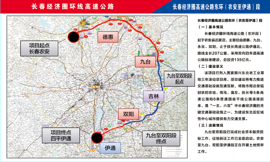 项目建成后,将为长吉图一体化发展打通东北向大通道,对于改善城市对外交通结构,加快环长春一小时经济圈建设,提升长春作为省会的城市辐射带动作用,提升区域整体竞争实力具有重要意义,对于完善全省高速公路骨架网络具有重要作用。