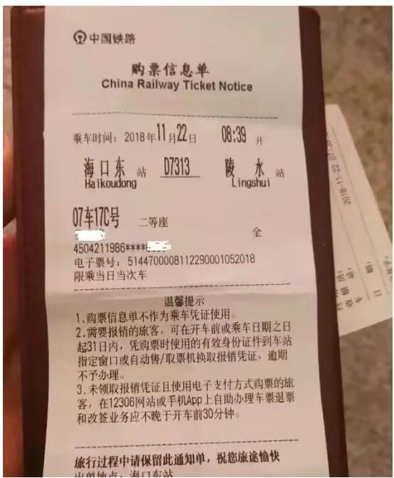当然,如果你是在车站购票,可以拿到一张购票信息单。有点像超市购物的小票,上面记录了旅客购票的车次、座位号等信息,但这个不作为乘车凭证。