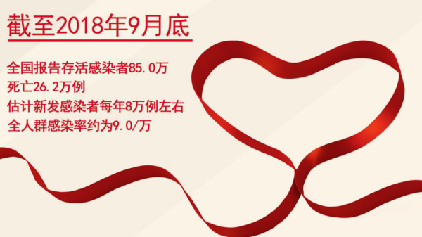 1981年6月5日,世界上第一例艾滋病病例在美国被发现。从那之后,防“艾”抗“艾”已经成为世界各国人民共同努力的目标。1985年,从我国第一次发现艾滋病病例至今,已经过去了33个年头。截至2018年底,我国估计存活艾滋病感染者125万。截至2018年9月底,全国报告存活感染者85.0万,死亡26.2万例,估计新发感染者每年8万例左右,全人群感染率约为9.0/万。