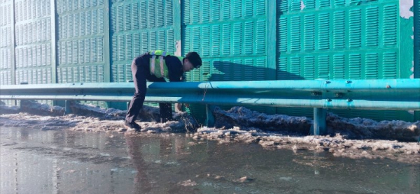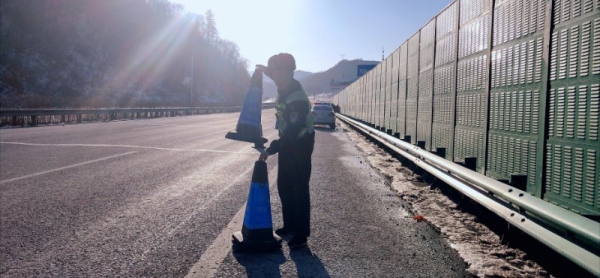 靖宇分局巡逻组至抚长高速61公里处发现一雪融水路段占用应急车道和部分行车道,随后,民警快速利用锥筒做好安全防护区,同路政、养护部门进行处理,并利用随车配备的工具进行引流处理。由于担心夜间气温降低,该路段结冰,重新利用锥筒设置防护区,提示车辆安全行车。高速公安提示:行经此处,请提前减速慢行,切勿紧急刹车和猛打转向等不当操作。