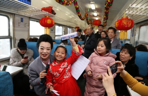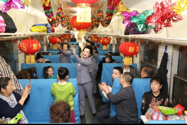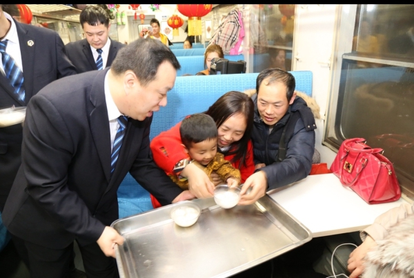 2月19日,中国铁路沈阳局集团有限公司吉林客运段担当乘务任务的4318次列车工作人员向旅客提供汤圆等节日美食,并准备了一场内容丰富的列车元宵联欢会,让旅客感受到浓浓的节日氛围。