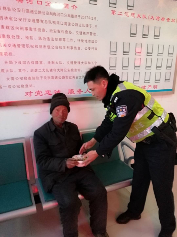 一天的时间,老人几乎水米未进,所以民警立即带老人回检查站办公楼内休息,并为老人准备了新做的饭菜。因为老人的家距离检查站有近二十公里的路程,在老人吃饭的同时,民警通过联络当地政府民政部门以及向附近村民咨询的方式确定去往老人所在的宝民村的具体路线。