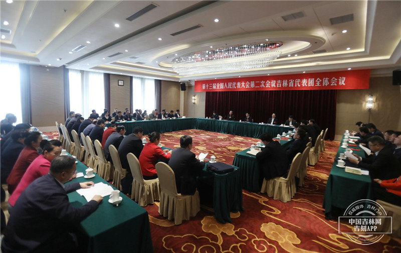 3月3日,出席十三届全国人大二次会议的吉林省代表团在驻地召开全体会议。
