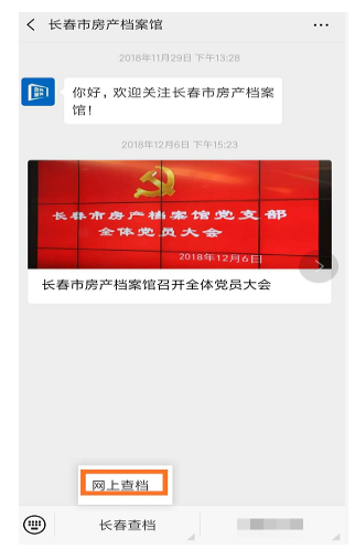 手机端的微信查询,第一步:关注“长春市房产档案馆”微信公众账号。