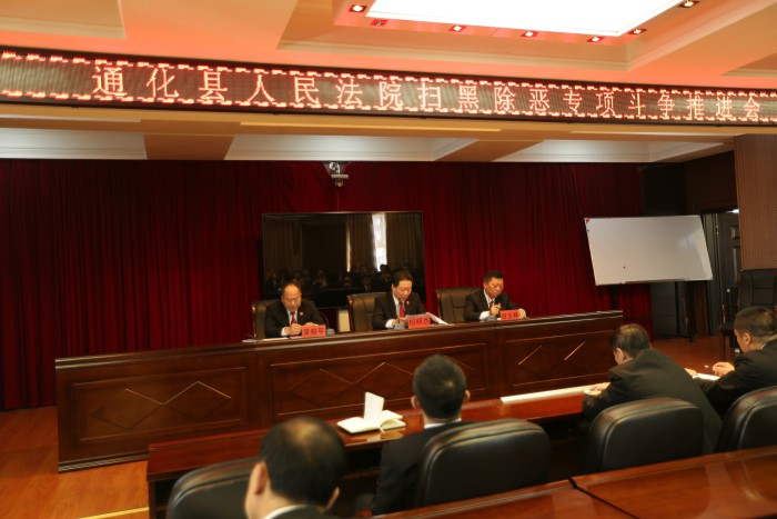 3月29日,通化县人民法院召开扫黑除恶专项斗争推进会。代院长祁明杰强调,要加强精准打击,依法惩恶不动摇。对涉黑涉恶犯罪案件,要一律深挖其背后腐败问题,对黑恶势力“关系网”“保护伞”一律一查到底,确保违法犯罪分子得到应有处罚,要严格落实“一案三查”工作,积极移交案件线索,扩大打击战果。