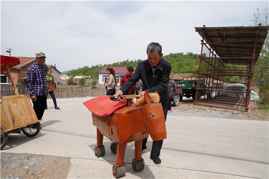 没有图纸,他全凭想象,一段时间过后,还真做出一匹全木质的马驹,可木马无法走动,他便找汽车修理部帮忙,可安装了动力装置,马腿承受不住走劈了,他只好把木腿换成铁腿。后来,他发现光换腿也不行,动力装置得放到马肚子里,他又把一些木质材料换成了铁质材料。许多零件镇里没有,他只好到县城或者吉林市购买,有时候为了买一个零件,一周三次去吉林市的旧物市场。