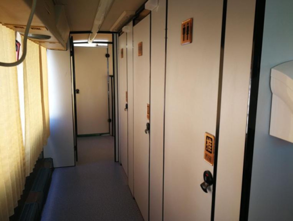 目前,在长春市体育场内,这辆“大客车”厕所已经停放在固定位置,从外观看,这是一辆普通的客车,当打开车门后,除前排的驾驶室外,车内都被改造成了洗手间。据了解,这台移动厕所设置了三个蹲位和四个便位,其中三个蹲位是分隔式的单间,便位与蹲位之间也有封闭措施。