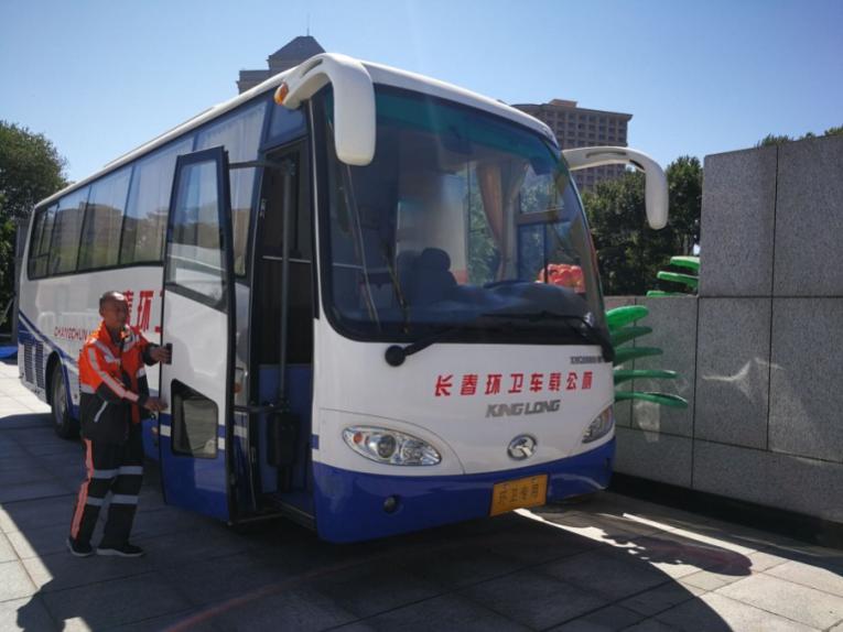 值得一提的是,本次比赛,环卫部门还在起终点内设置了一个特别地“大客车”移动厕所。